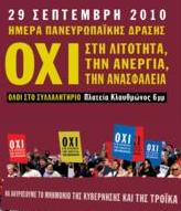 Την Τετάρτη, 29 Σεπτέμβρη, διεξάγονται πανευρωπαϊκά συγκεντρώσεις και πορείες τν εργατικών συνδικάτων κατά της λιτότητας που έρχεται να επιβληθεί από την άρχουσα τάξη σε όλη την Ευρώπη.Για την Ελλάδα, η ημέρα και οι εκδηλώσεις της έχουν μία τεράστια σημασία. Η Ελλάδα βρίσκεται στο στόχαστρο της επίθεσης και ο λαός της στην καρδιά του κυκλώνα της σκοτεινής νεοταξικής συντήρησης και των σχεδίων της.
